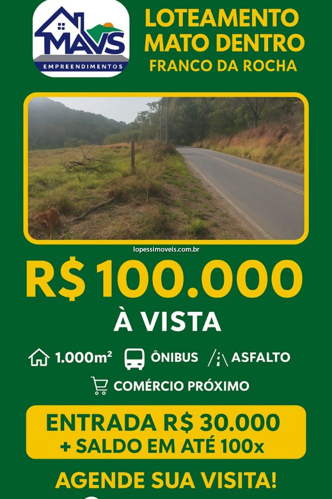 Loteamento Mato Dentro Franco da Rocha.Lotes de: 1.000m². Valor: R$ 100.000,00.